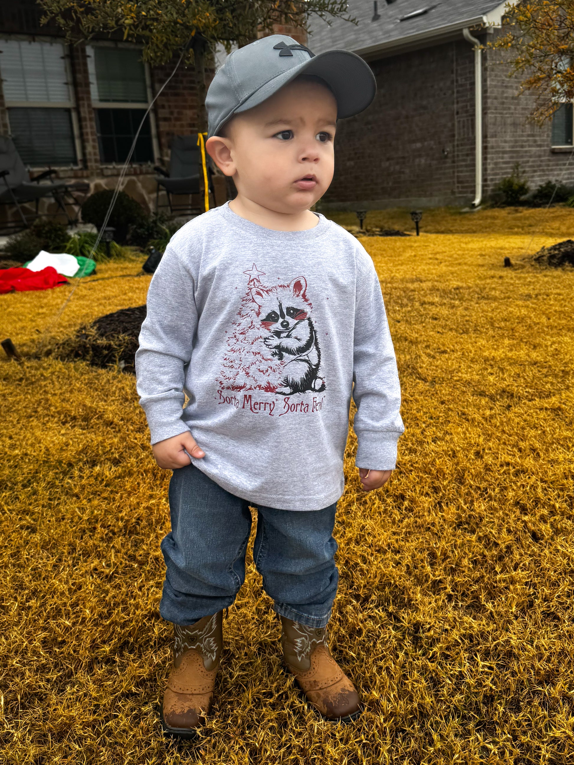 Sorta Merry Sorta Feral graphic on a heather grey longe sleeve tee!
